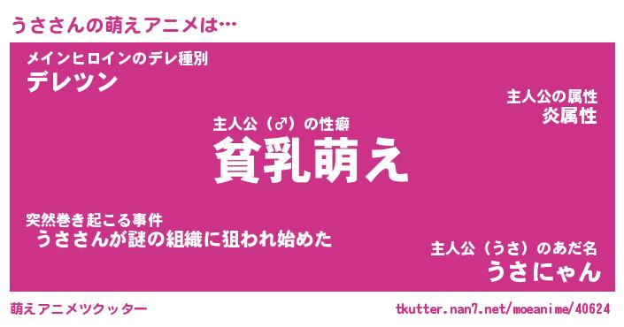 | 男性向けラノベタイトル風あだ名 | 『うさの憂鬱』 |