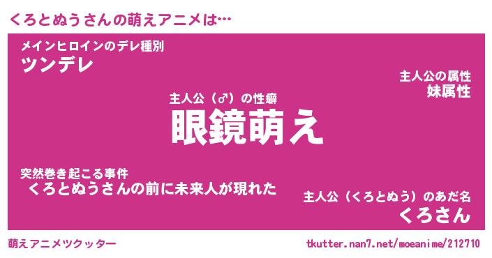 | 男性向けラノベタイトル風あだ名 | 『くろとぬうの憂鬱』 |