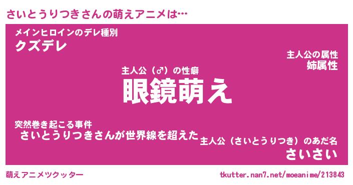 | 男性向けラノベタイトル風あだ名 | 『さいとうりつきの憂鬱』 |