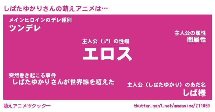 | 男性向けラノベタイトル風あだ名 | 『シバタユカリアートオンライン』 |