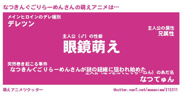 なつきんぐごりらーめんさんの萌えアニメをツクッター!
