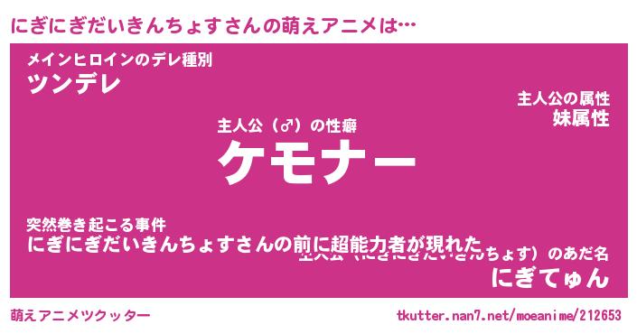 | 男性向けラノベタイトル風あだ名 | 『ニギニギダイキンチョスアートオンライン』 |
