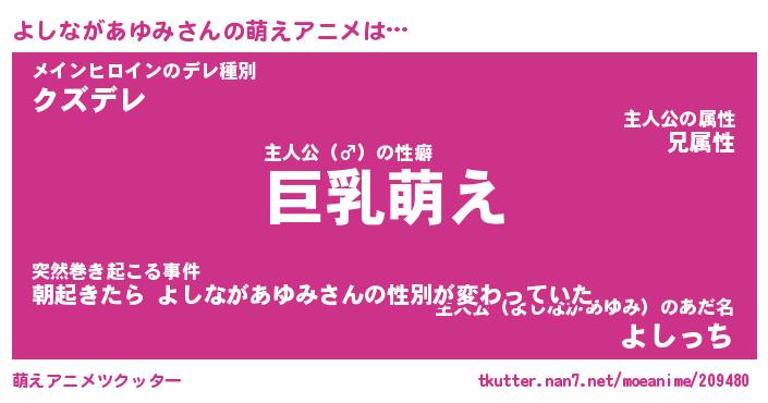| 男性向けラノベタイトル風あだ名 | 『よしながあゆみの憂鬱』 |