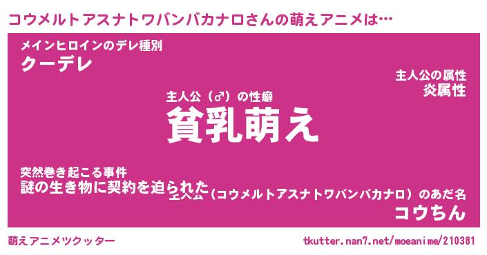 | ツイッター | コウメルトアスナトワバンバカナロさんのツイッターID『kikurage_kun』 |