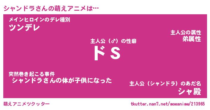 | 女子向けラノベタイトル風あだ名 | 『(仮)シャンドラのやんごとなき事情』 |