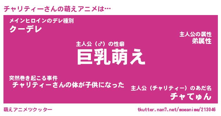 | 男性向けラノベタイトル風あだ名 | 『チャリティーの憂鬱』 |