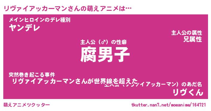 | 男性向けラノベタイトル風あだ名 | 『リヴァイアッカーマンアートオンライン』 |