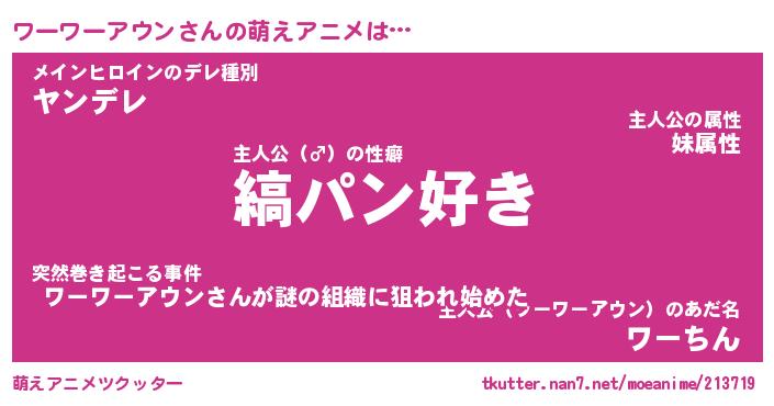 | 女子向けラノベタイトル風あだ名 | 『(仮)ワーワーアウンのやんごとなき事情』 |