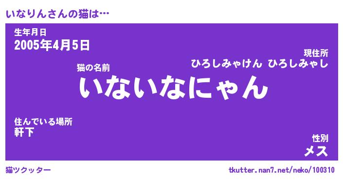 | ツイッター | いなりんさんのツイッターID『katatsumuri_kun』 |