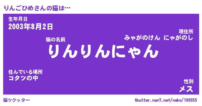 | ヘコむあだ名 | 『りんにー』『なまこ酢』『りんを』 |