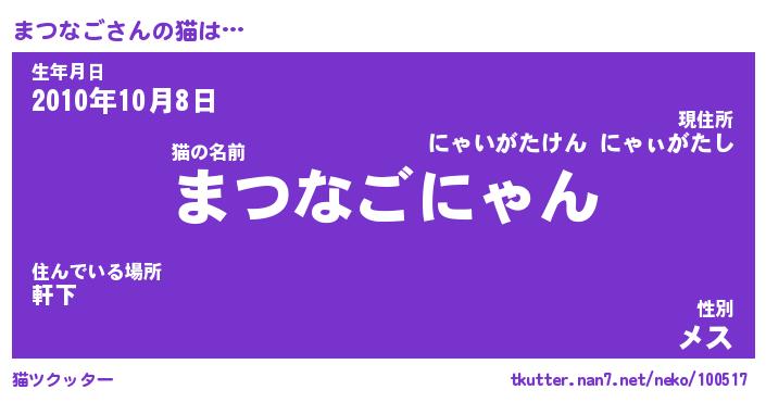 | 2回繰り返すあだ名 | 『まつまつ』『ままつつ』『ぬめぬめ』 |