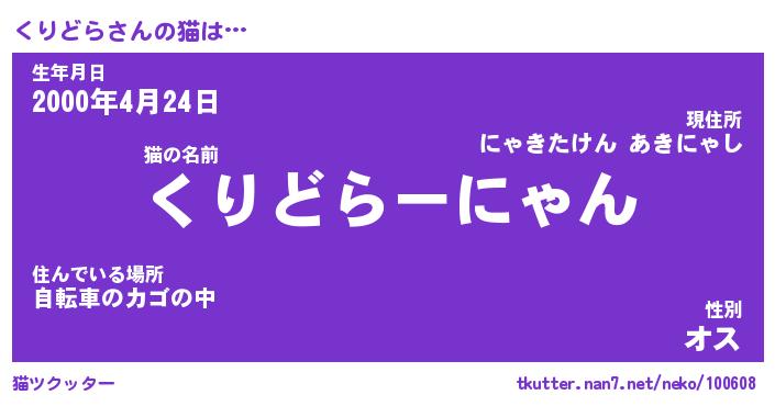 | 生年月日? …「くろねこ」 | 8月01日 10:16 |
