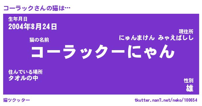 | 生年月日? …「くろねこ」 | 8月01日 10:16 |
