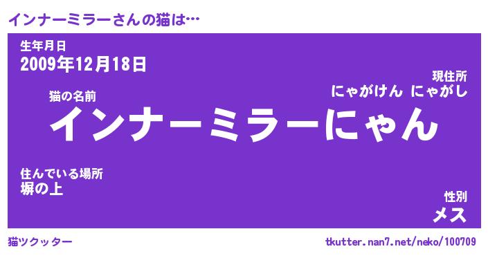 | 男性向けラノベタイトル風あだ名 | 『インナーミラーの憂鬱』 |