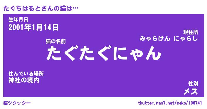 | ツイッター | たぐちはるとさんのツイッターID『katatsumuri_kun』 |