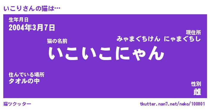 | 生年月日? …「くろねこ」 | 8月01日 10:16 |