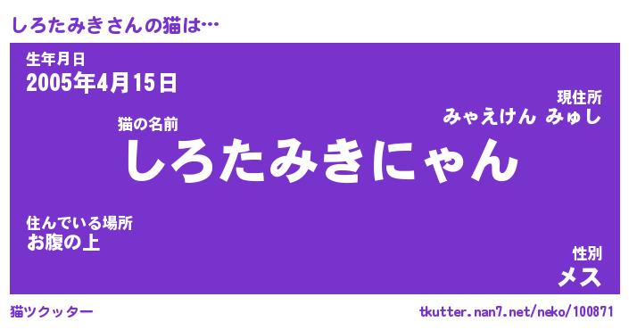 | 肩書あだ名 | 『しろたみき御曹司』『しろたみき塾長』 |
