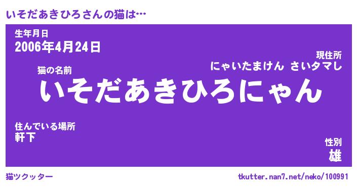 | 肩書あだ名 | 『いそだあきひろ御曹司』 |