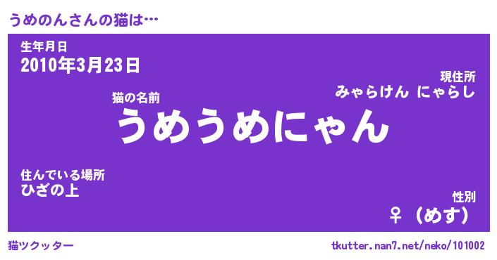 | ファンタジー風あだ名 | 『ウメフェル』『エターナルウメノンー』 |
