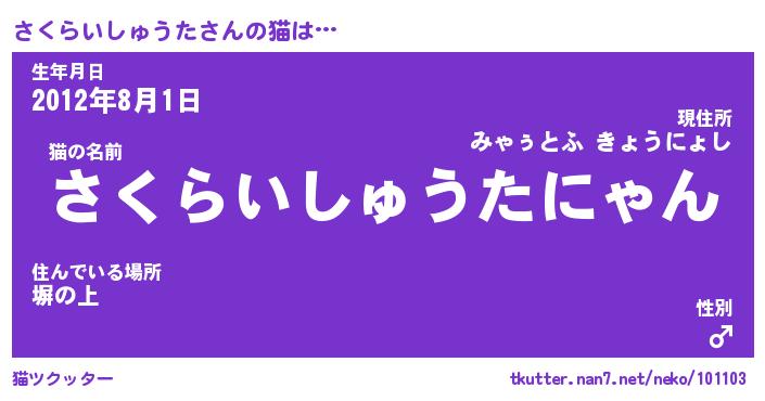 | 生年月日? …「くろねこ」 | 8月01日 10:16 |
