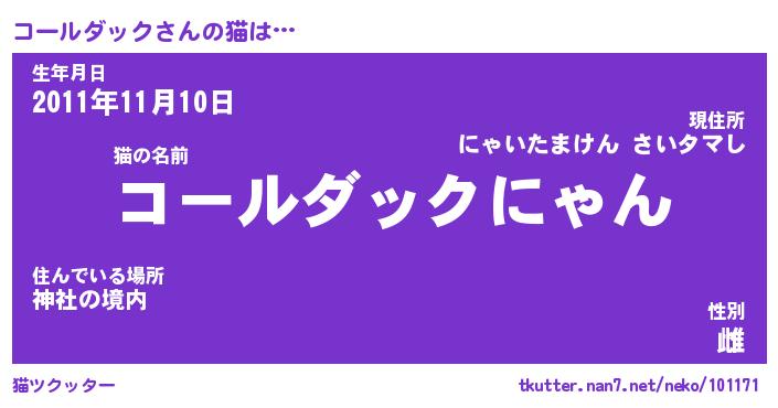 | 男性向けラノベタイトル風あだ名 | 『コールダックの憂鬱』 |