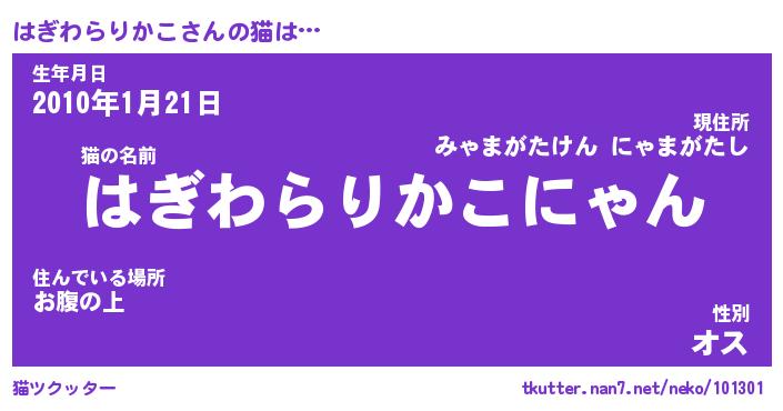 | 生年月日? …「くろねこ」 | 8月01日 10:16 |