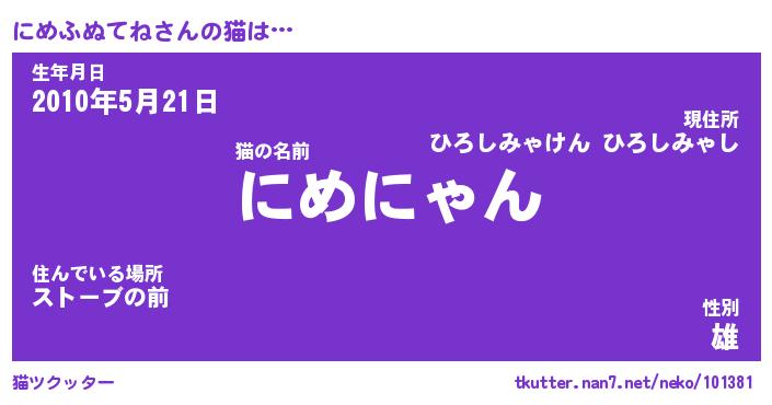 | 2回繰り返すあだ名 | 『にめにめ』『ににめめ』『ねちねち』 |
