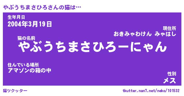 | ツイッター | やぶうちまさひろさんのツイッターID『fukuyoka_nyan』 |