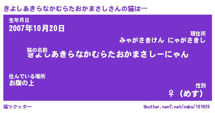 | 生年月日? …「くろねこ」 | 8月01日 10:16 |