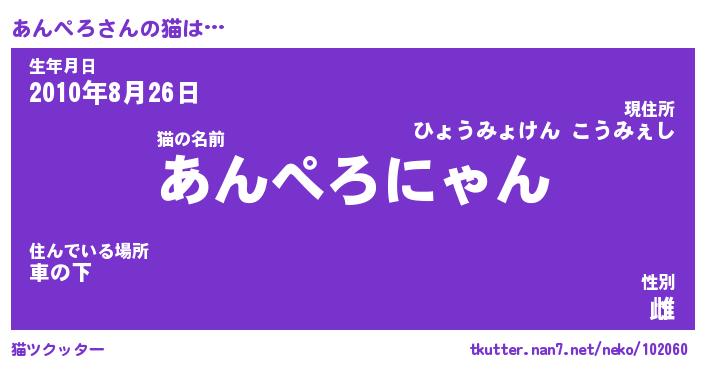 | 男性向けラノベタイトル風あだ名 | 『あんぺろの憂鬱』 |