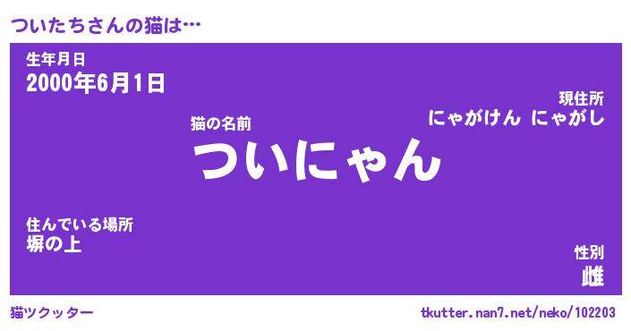 | ポケモン風あだ名 | 『ツイチュウ』『ツイタダネ』 |