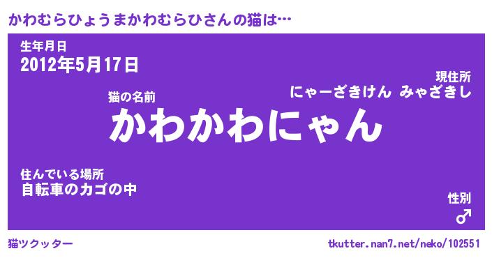 | ツイッター | かわむらひょうまかわむらひさんのツイッターID『dendenmushi_nyan』 |