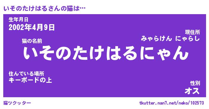 | 男性向けラノベタイトル風あだ名 | 『いそのたけはるの憂鬱』 |