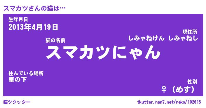 | 意味不明あだ名 | 『ペロリンスマカツ』『永久保存スマカツ』 |