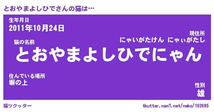 | ポケモン風あだ名 | 『トオチュウ』『トオヤダネ』 |