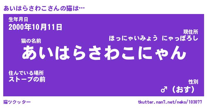 | 生年月日? …「くろねこ」 | 8月01日 10:16 |