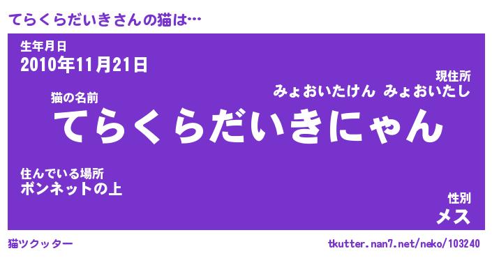 | 生年月日? …「くろねこ」 | 8月01日 10:16 |