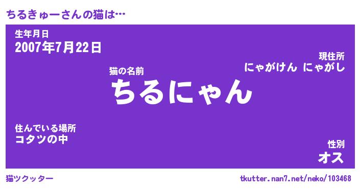 | 男性向けラノベタイトル風あだ名 | 『ちるきゅーの憂鬱』 |