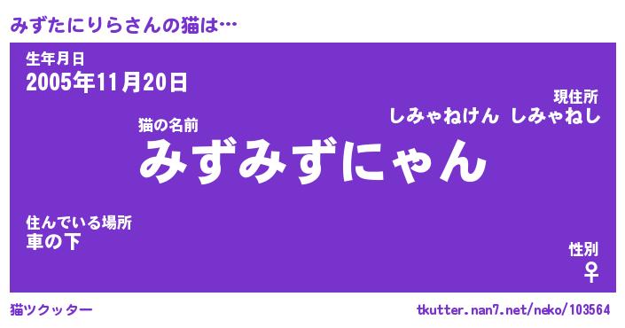 | ポケモン風あだ名 | 『ミズチュウ』『ミズタダネ』 |