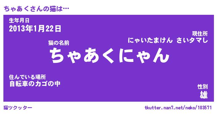 | 男性向けラノベタイトル風あだ名 | 『ちゃあくの憂鬱』 |