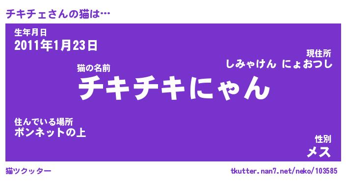 | 意味不明あだ名 | 『ペロリンチキチェ』『永久保存チキチェ』 |