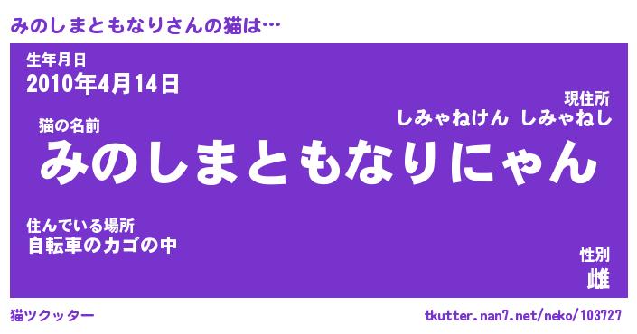 | 男性向けラノベタイトル風あだ名 | 『みのしまともなりの憂鬱』 |