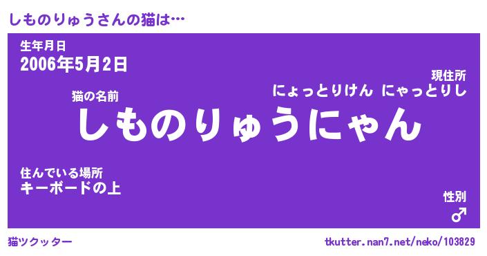 | 男性向けラノベタイトル風あだ名 | 『しものりゅうの憂鬱』 |