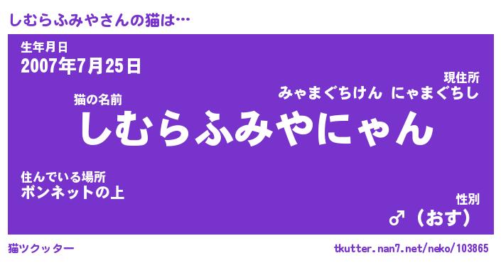 | 男性向けラノベタイトル風あだ名 | 『しむらふみやの憂鬱』 |