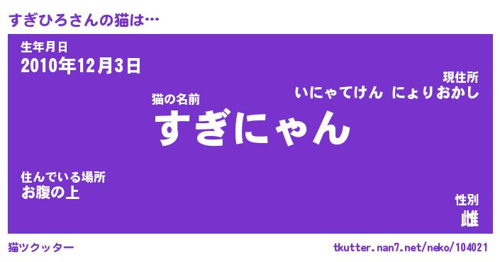 | 生年月日? …「くろねこ」 | 8月01日 10:16 |