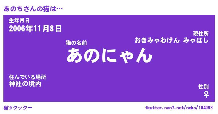 | 生年月日? …「くろねこ」 | 8月01日 10:16 |