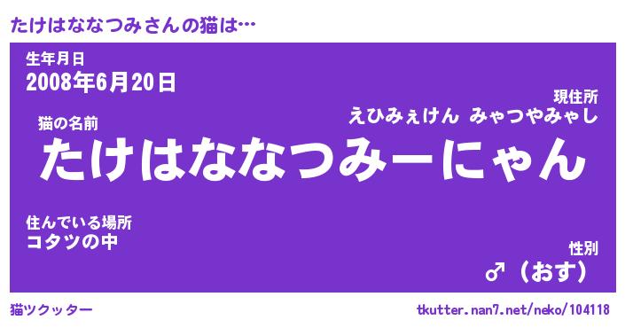 | 2回繰り返すあだ名 | 『たけたけ』『たたけけ』『おやおや』 |