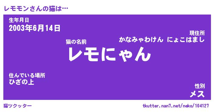 | 男性向けラノベタイトル風あだ名 | 『レモモンの憂鬱』 |