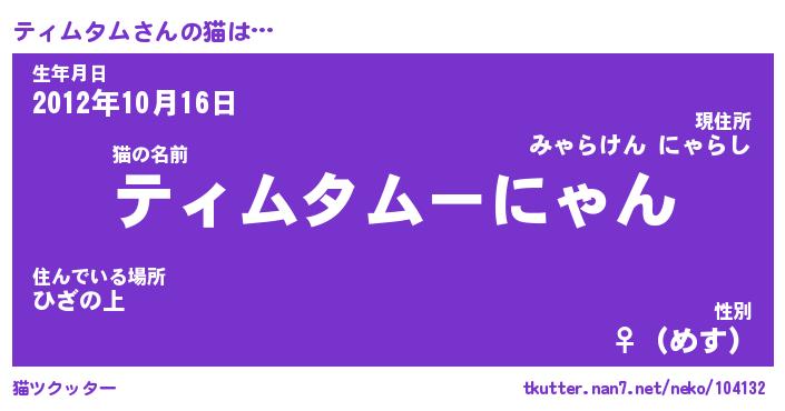 | ポケモン風あだ名 | 『ティチュウ』『ティムダネ』 |