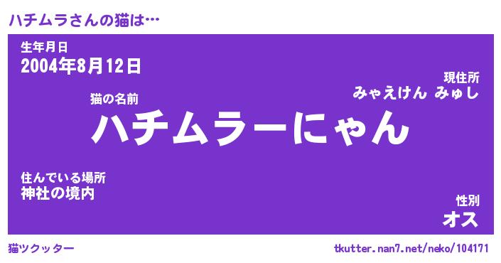 | 生年月日? …「くろねこ」 | 8月01日 10:16 |